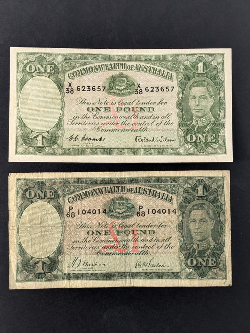 AUSTRALIAN ONE POUND BANK NOTES INCLUDES 1938 SHEEHAN/ MCFARLANE BANK NOTE P68 1040141952 COOMBS / WILSON BANK NOTE X38 623657232866+8