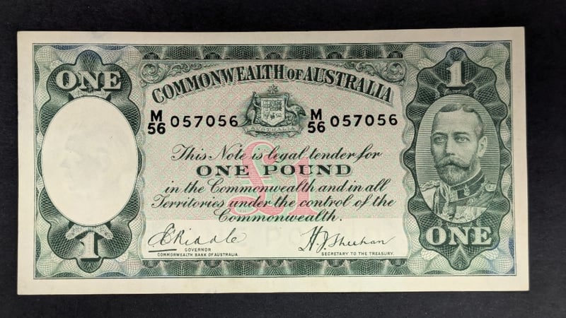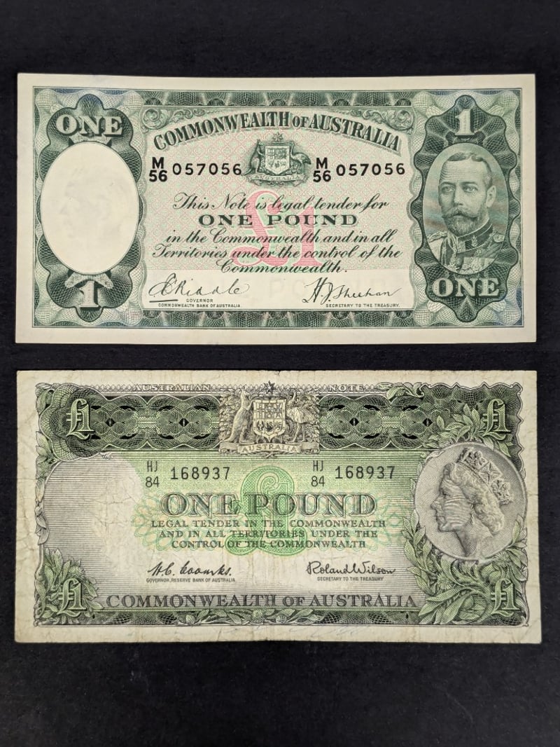 AUSTRALIAN BANK NOTES INCLUDES 1933 RIDDLE / SHEEHAN ONE POUND BANK NOTE M56 0570561961 COOMBS / WILSON ONE POUND RESERVE BANK NOTE HJ84 168937232866+10