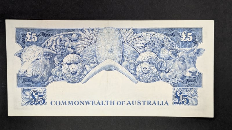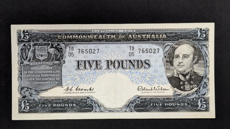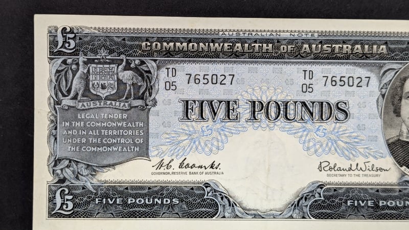 1960 AUSTRALIAN COOMBES / WILSON FIVE POUND RESERVE BANK NOTE TD05 765027232866+13