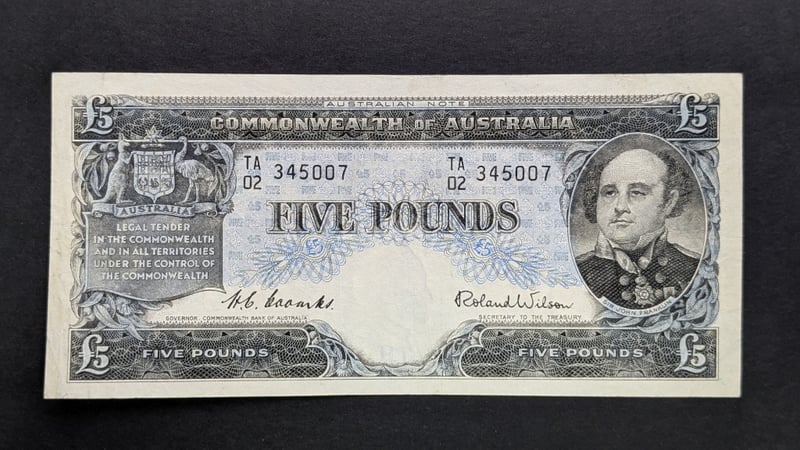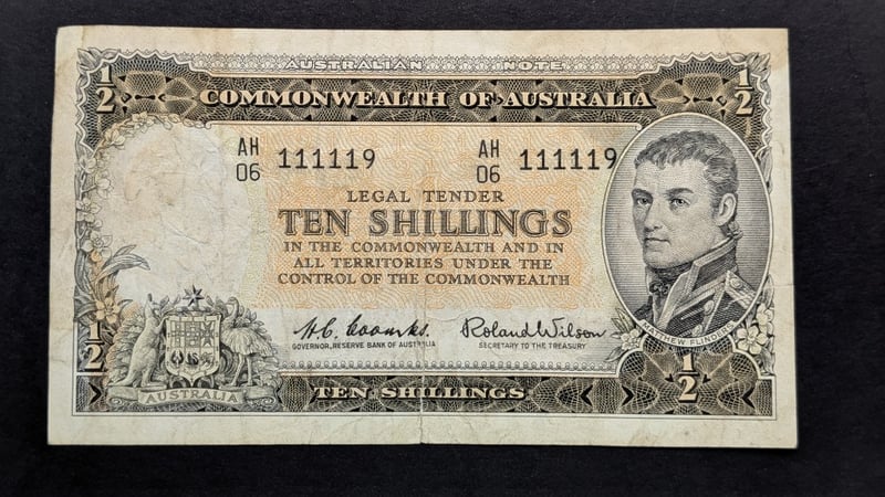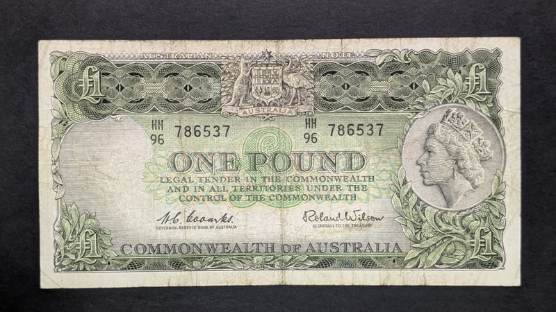 3 X AUSTRALIAN BANK NOTES INCLUDES 1961 COOMBS / WILSON TEN SHILLINGS RESERVE BANK NOTE AH06 1111191961 COOMBS / WILSON ONE POUND RESERVE BANK NOTE HH96 7865371954 COOMBS / WILSON FIVE POUNDS COMMONWEALTH BANK NOTE TA02 345007232866+21