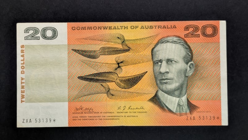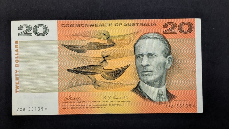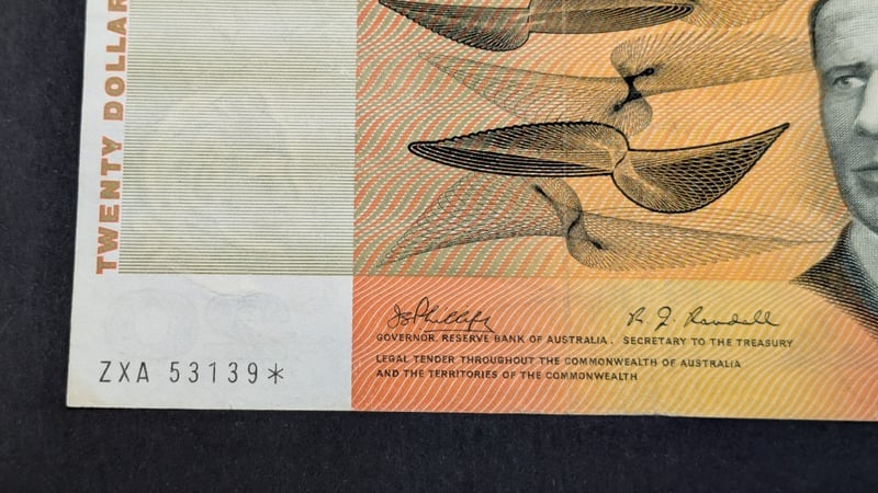 1968 AUSTRALIAN PHILLIPS / RANDALL TWENTY DOLLAR BANK NOTE STAR PREFIX ZXA 53139232866+23