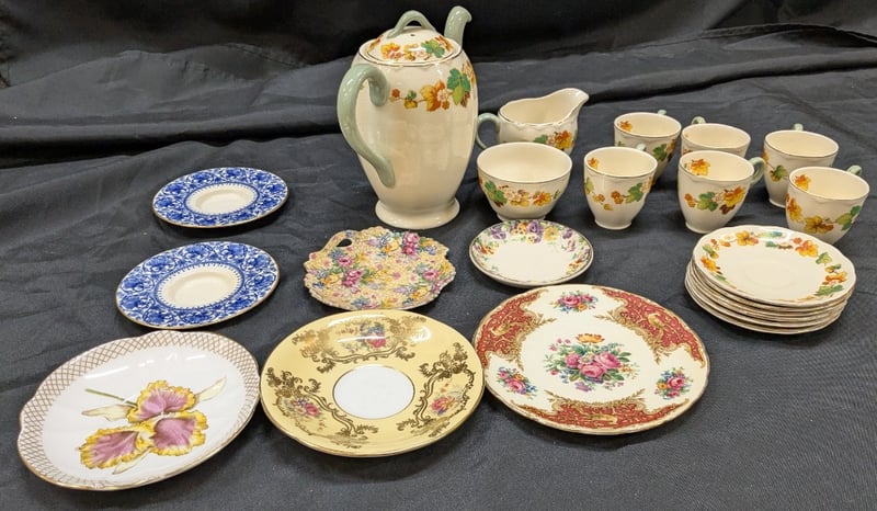 Also Includes Various Saucers From Orchid Salisbury, Aynsley, Foley China 'Montrose', Etc
