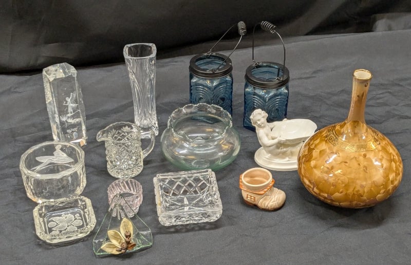 COLLECTION OF GLASSWARE AND HOMEWAREIncludes Glass Vases And Ornaments, Citrine Edition Vase By Bill Powell, Small Dishes, EtcCondition: Good - Refer To Images585058+22