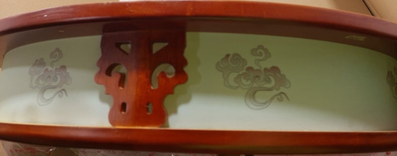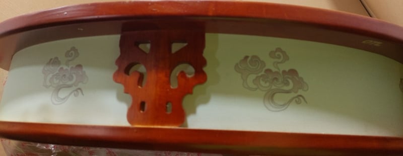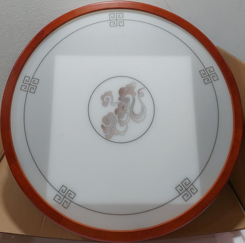 Lingyun Zhongyuan model celling lamp, which features an alder wood frame.Dims: 76 x 76 x 12cm Note: item is untested, signs of wear.