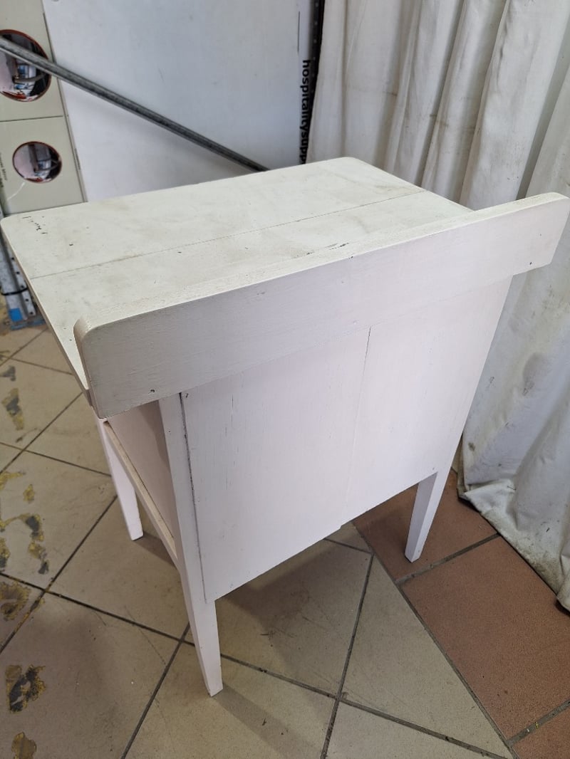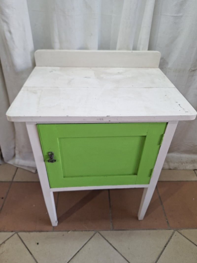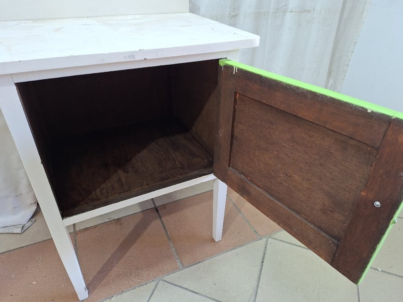 Side Table With Storage, Timber Style, White & Green Finish Dimensions H:79cm W:61cm D:44cm