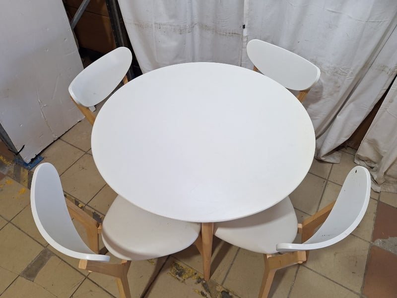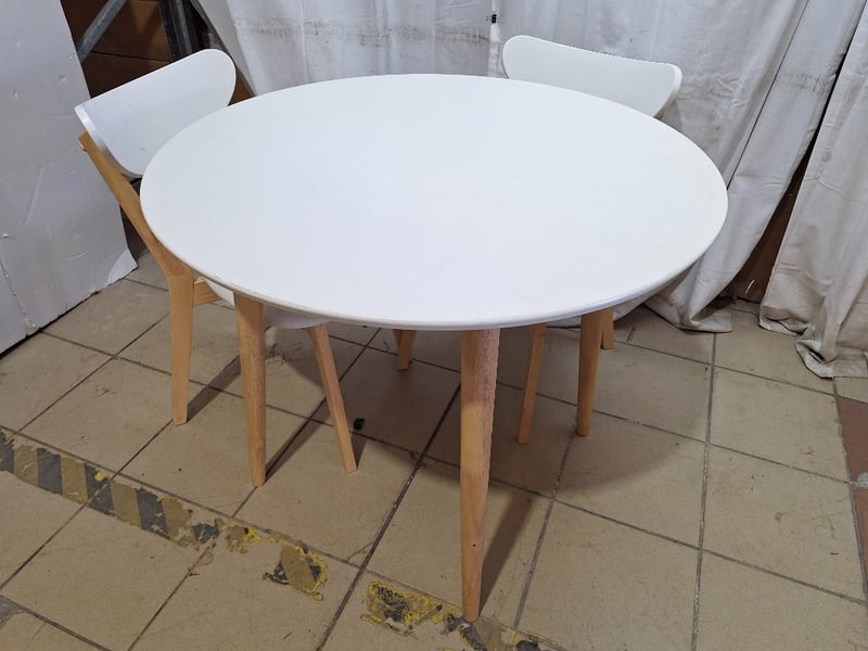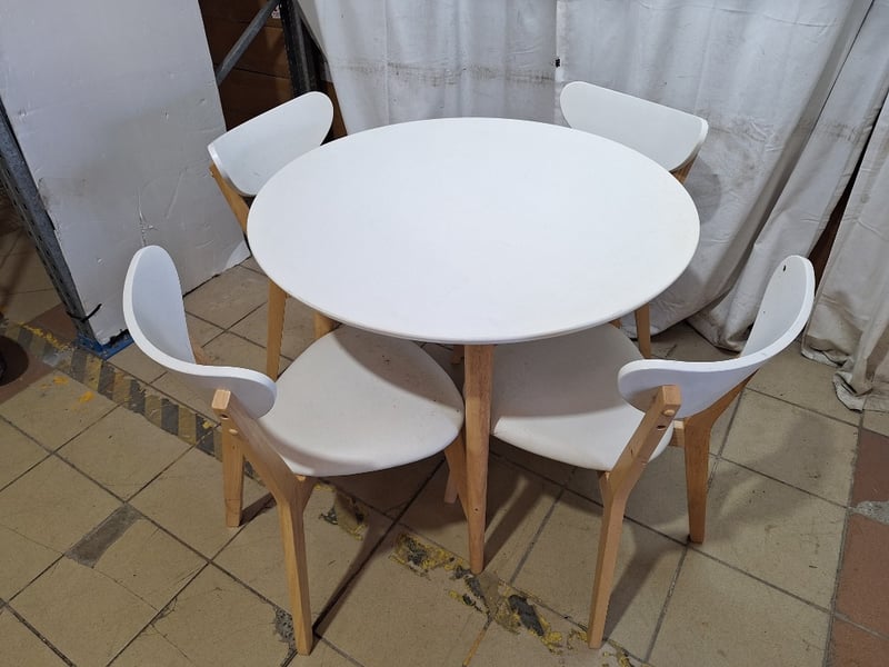 4-Seater Dining Table, Timber Style, White & Natural Finish