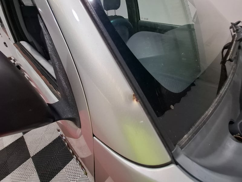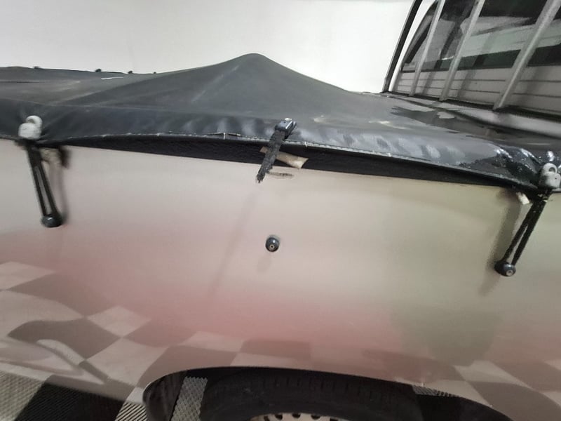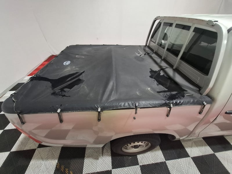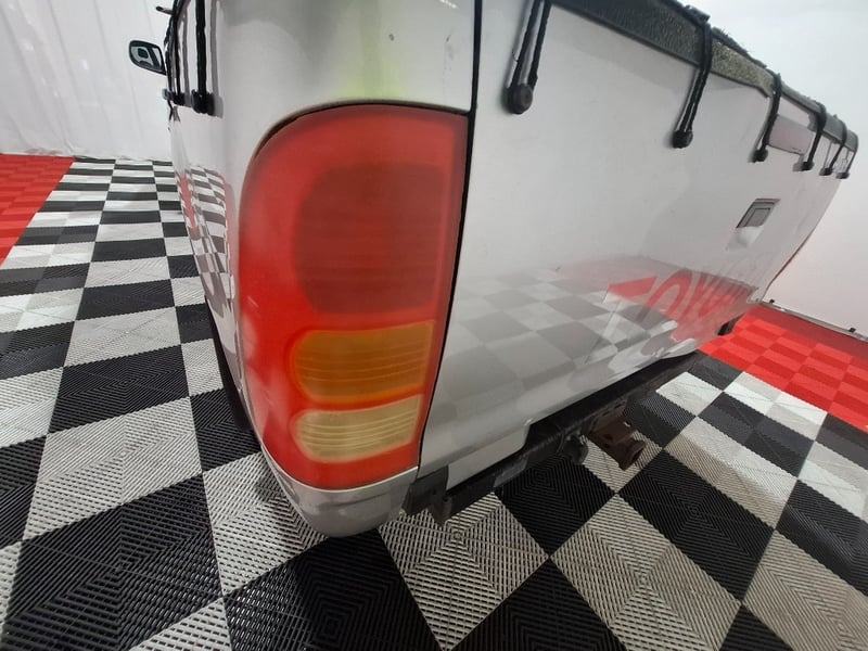 Interior plastics have scratches scuffs marks and stains, front driver seat vinyl seat is torn jn 2 places, front and rear seats have stains. Carpet I n drivrrs foot well is ripped. Exterior pait has clear coat fade roof has started to peal there are scratches scuffs and marks on paint work. black plastics have faded to grey, headlight lenses have yellowed, tail gate is dented. Window trims have surface rust. Tail lights have yellowed,