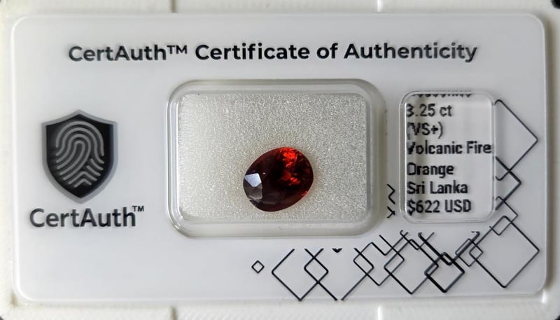 NATURAL 3.25CT HESSONITE GARNET OVAL CUT UNHEATED SRI LANKA (CEYLON) WITH CERTAUTH DIGITAL CERTIFICATE This Natural Hessonite Garnet Displays A Volcanic Fire Orange Colour And Is Fashioned Into An Oval Cut. With A Weight Of 3.25 Ct And Vs+ Clarity, This Earth-Mined Gemstone Is Unheated And Untreated. This Listing Includes A Certauth Digital Certificate Of Authenticity For Secure Online Verification.• Gemstone: Hessonite Garnet• Carat Weight: 3.25 Ct• Colour: Volcanic Fire Orange• Cut: Oval Cut• Clarity: Vs+• Treatment: Unheated / Untreated• Dimensions: 10.2 × 8.1 × 4.8 Mm• Origin: Sri Lanka (Ceylon)• Certification: Certauth Digital Certificate (Ca186262)• Estimated Value: $622 Usd Condition: Good - Refer Images 0488473+36