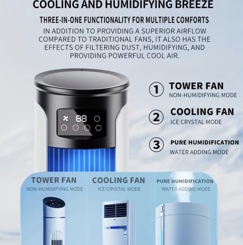 Portable Air Conditioning Fan, Evaporative Air Cooler, Mist Outlet, 6 Speeds And 6-Hour Timer, Portable Air Humidifier with Ambient Light