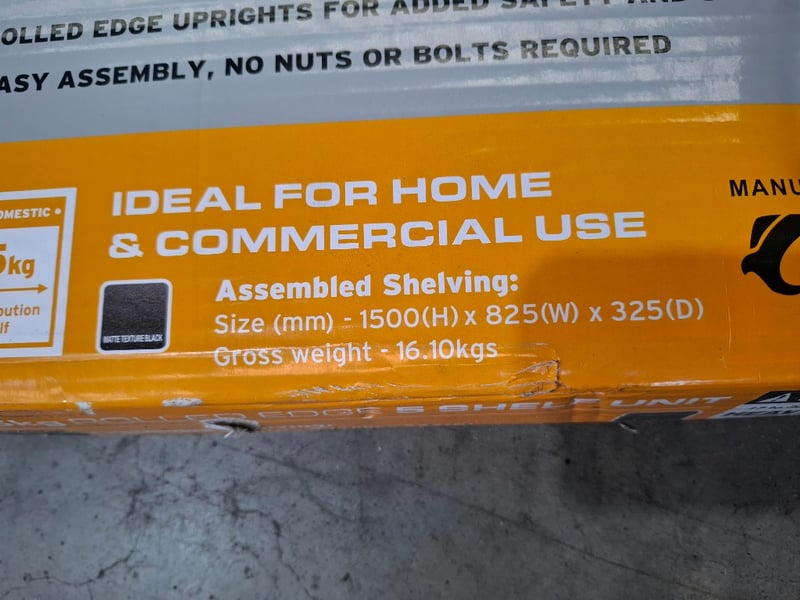 5 tier shelf 175 kg slot Dimensions 82 cm w x 32.5 cm D x 150 cm H
