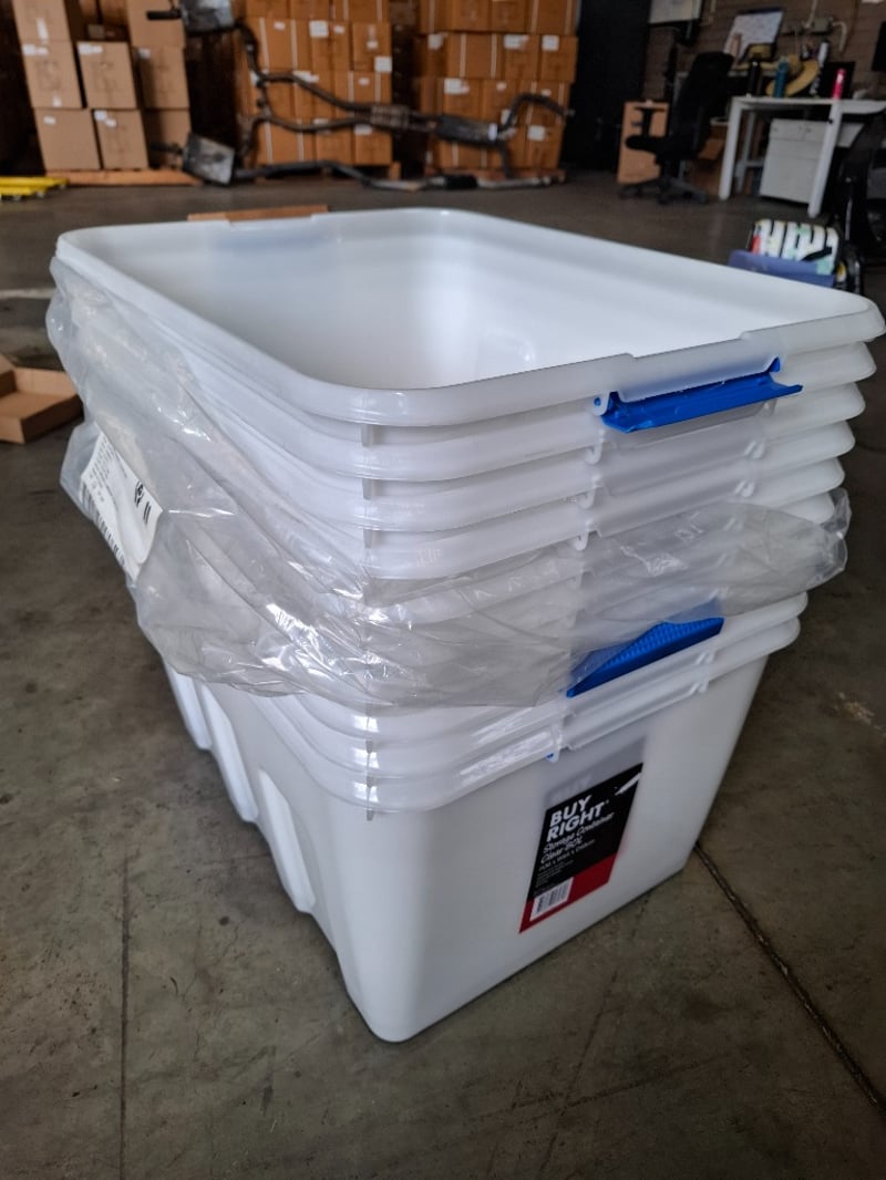 Storage containers clear 80 L, not lids, not handlingQty: 10Sold as lots