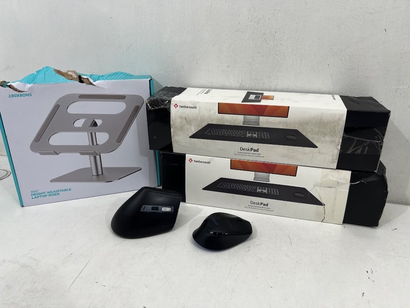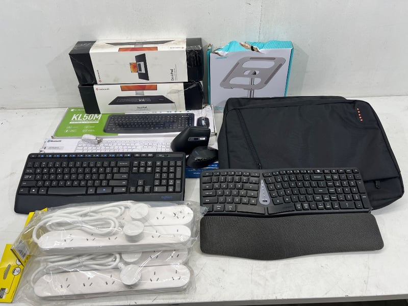 Assorted laptop/ computer accessories, including; laptop riser, keyboards, Desk pads etc, brands include; J. Burrows, Bon.elk, Dynabook etc Sold as lot