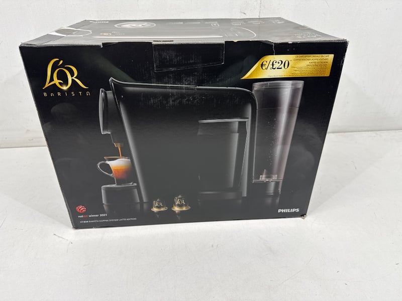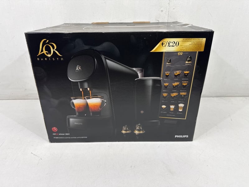 Coffee Machine, Philips, L’OR Barista Latte Piano Noir, LM8014/60, Pod Machine, Black.