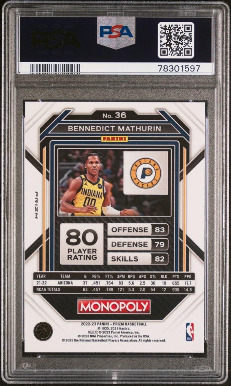 2022 PANINI PRIZM MONOPOLY #36 BENNEDICT MATHURIN MONOPOLY BLACK PSA MINT 9Condition: Good - Refer To Images232856+49
