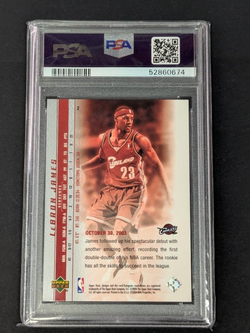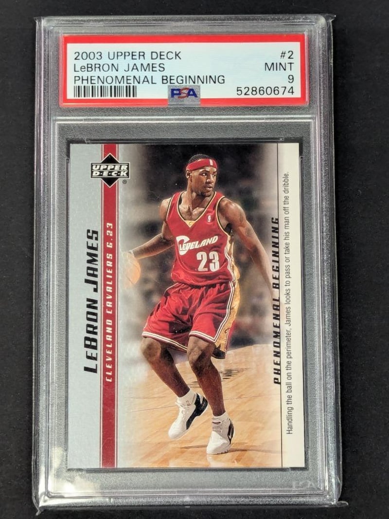 2003 UPPER DECK LEBRON JAMES PHENOMENAL BEGINNINGS #2 LEBRON JAMES PHENOMENAL BEGINNING PSA MINT 9Condition: Good - Refer To Images232856+52