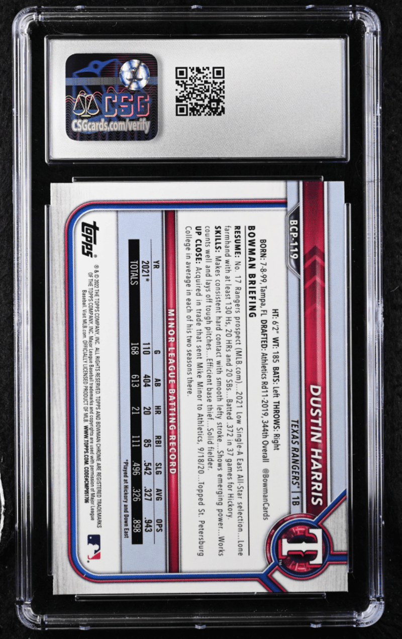 2022 BOWMAN CHROME PROSPECTS #BCP-119 DUSTIN HARRIS CSG MINT 9Condition: Good - Refer To Images232856+75