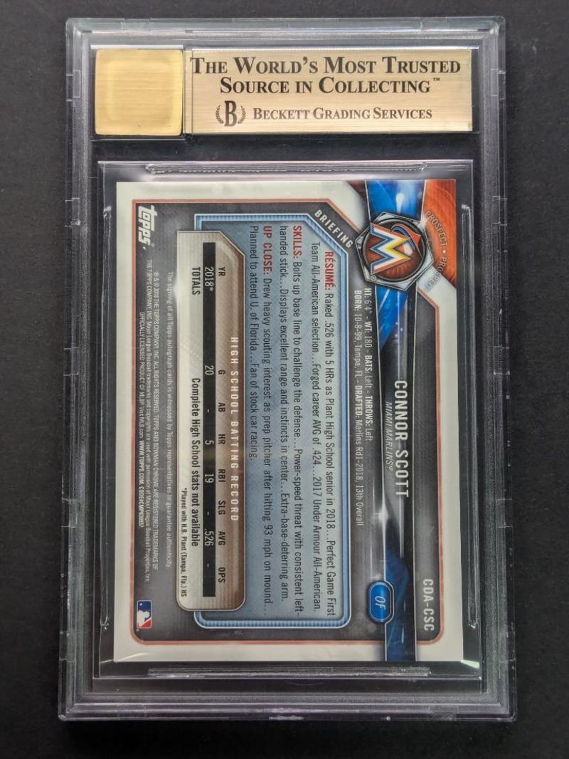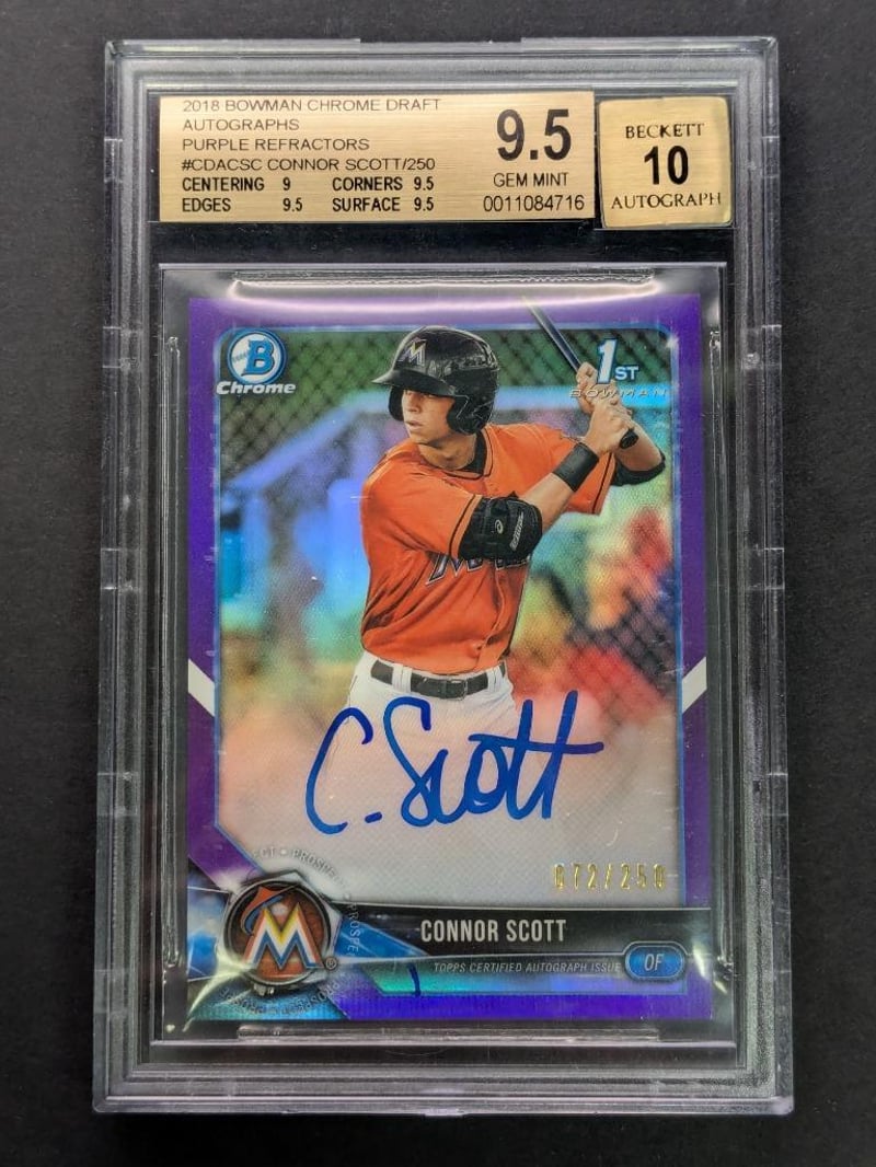 2018 BOWMAN CHROME DRAFT AUTOGRAPHS PURPLE REFRACTORS #CDACSC CONNOR SCOTT /250 BECKETT GEM MINT 9.5Condition: Good - Refer To Images232856+86