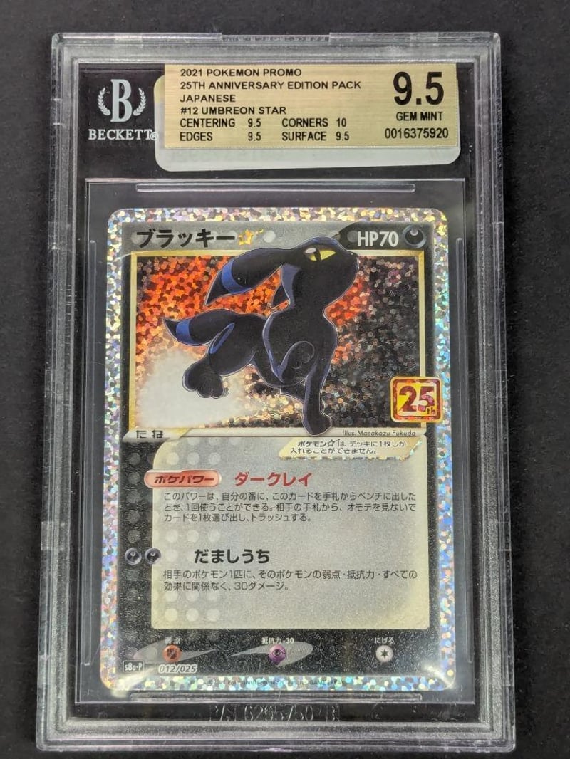 2021 POKEMON PROMO 25TH ANNIVERSARY EDITION PACK JAPANESE #12 UMBREON STAR BECKETT GEM MINT 9.5Condition: Good - Refer To Images232856+89