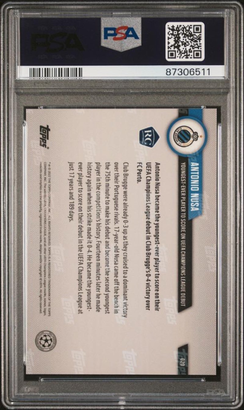 2022 TOPPS NOW UEFA CHAMPIONS LEAGUE #20 ANTONIO NUSA PSA GEM MINT 10Condition: Good - Refer To Images232856+101