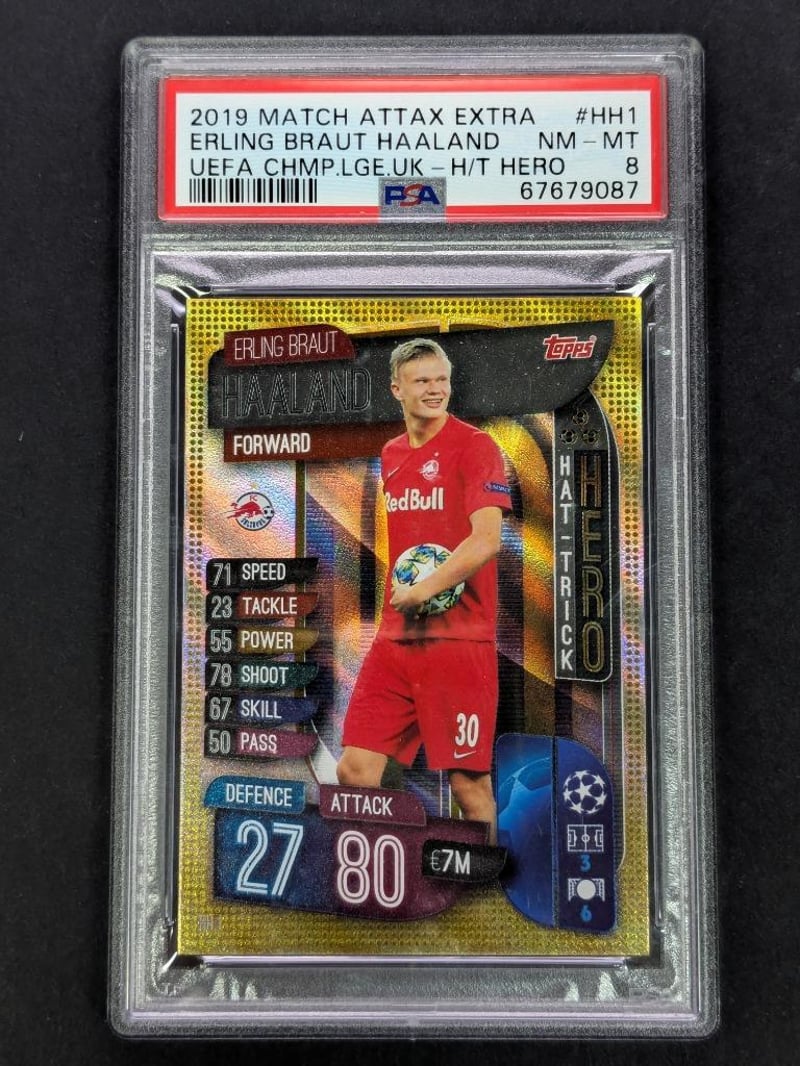 2019 TOPPS MATCH ATTAX EXTRA UEFA CHAMPIONS LEAGUE UK HAT-TRICK HERO #HH1 ERLING BRAUT HAALAND UEFA CHMP.LGE.UK-H/T HERO PSA NM-MT8Condition: Good - Refer To Images232856+102