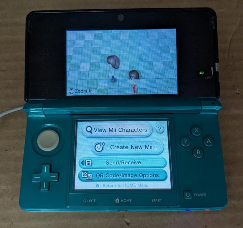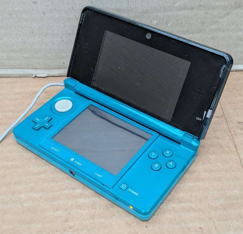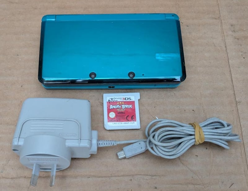 Nintendo 3DS video game console with charger and game