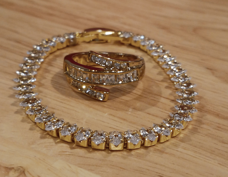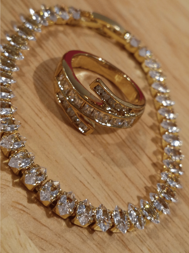 GOLD PLATED WHITE ZIRCONS BRACELET AND RING