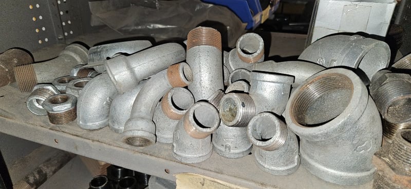 Assorted Threaded Galvanised Pipe Bends, Trolley Tyre and Rims, And More Qty Per lot Sold as Lot