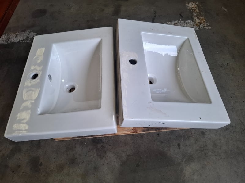 Asortment of 2 x ceramic vanity basinDimensions: 60 cm W x 46 cm D x 20 cm HNote: Cleaning required