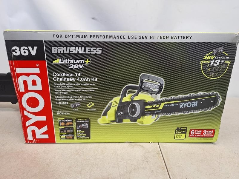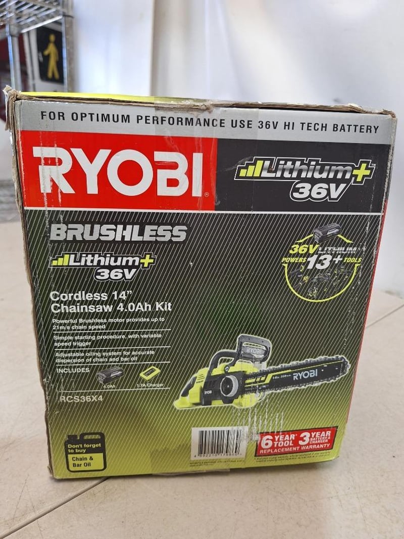 Ryobi Chainsaw 36V, 14 inch cordless 4.0Ah kit, new in box, new in factory sealed box RRP $549.00