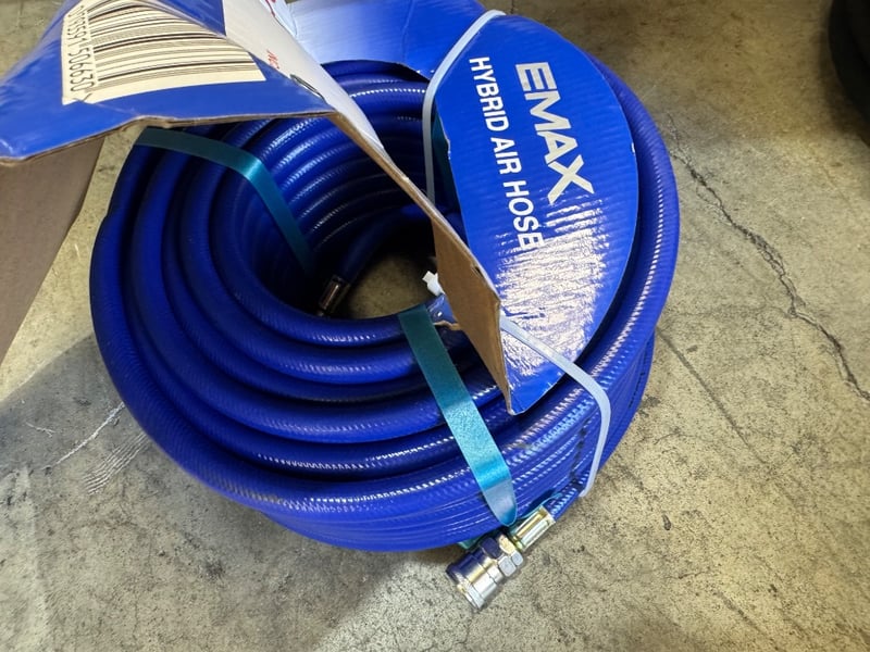 Assortment lot of homewares and goods including air hose, chisel stand moreNote: Sold as Lot