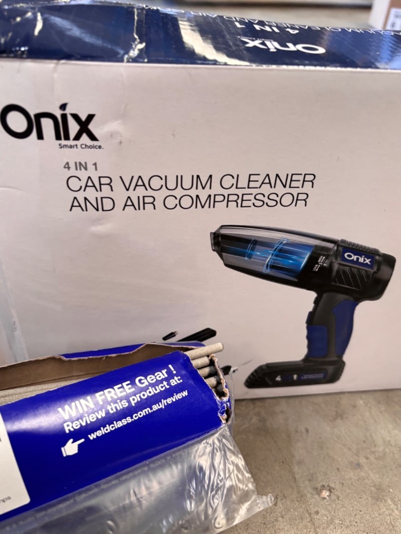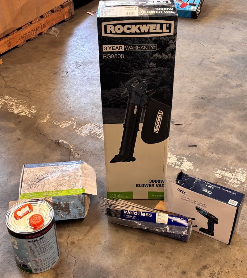 Assorted lot, including 3000w Blower Vac, 5liter petrol can, welding sticks.Note; sold as lot, some items may be damaged(refer to images)