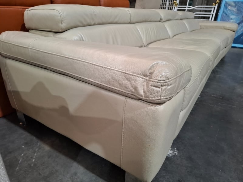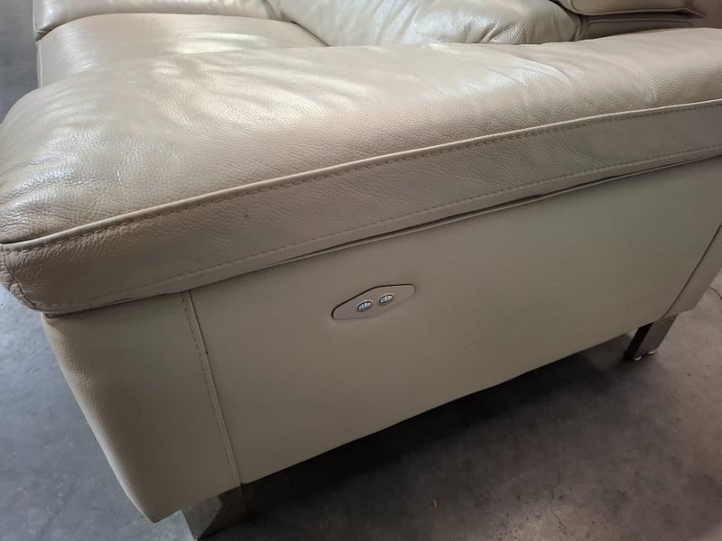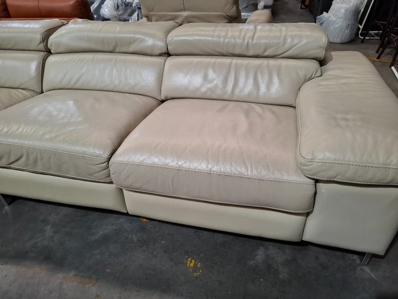 4 seats ,beige colour Leather lounge Dimensions: 336cm x w 100 cm D x70 cm H Note: 2 seater electric, not power cords