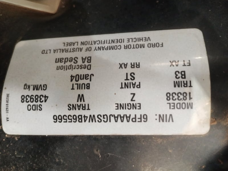 Chassis No: 6FPAAAJGSW4B65566
