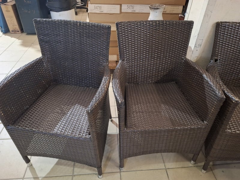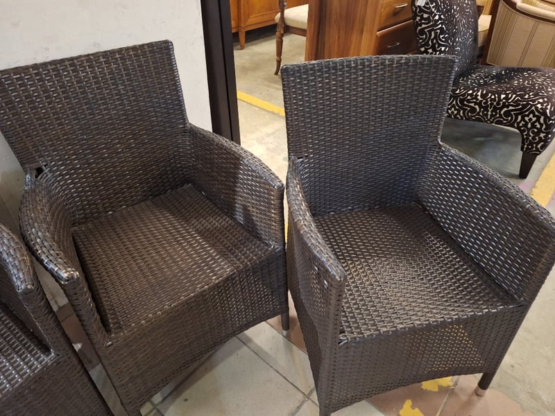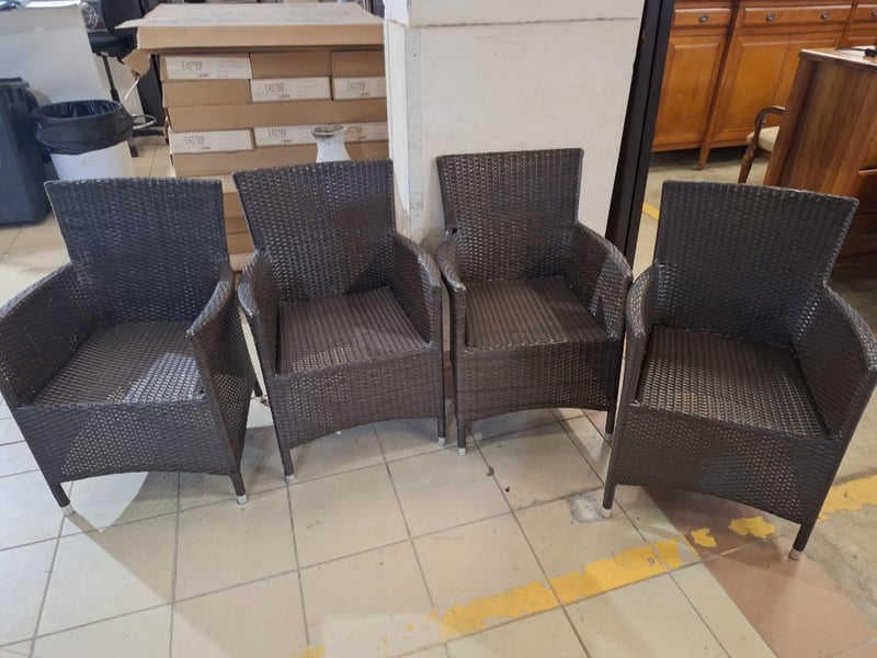 Set Of 4 Outdoor Chairs, Rattan Style, Brown Finish