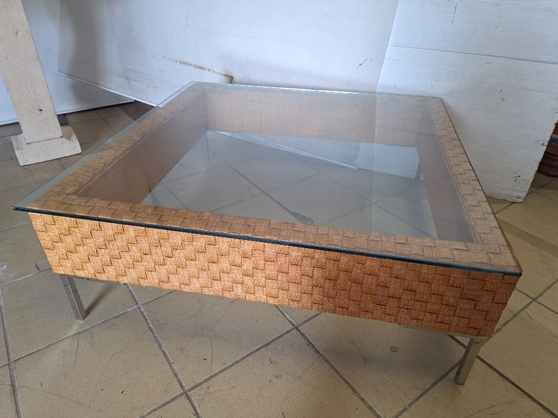 Coffee Table With Glass Top, Rattan Style, Natural FinishDimensions H:38cm W:101cm D:101cm
