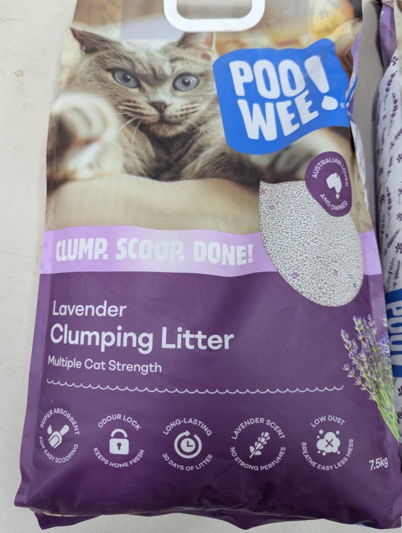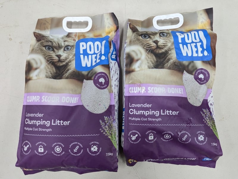 Two 7.5kg bags of PooWee! lavender clumping litter