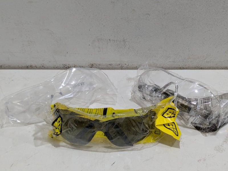 Set of protective equipment (PPE) for eye safety. Sold as a lot.Note: Signs of wear and tear.