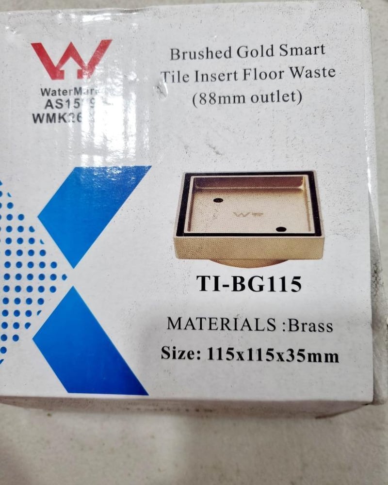 RRP $29.70, TILE Brushed Gold Smart Tile Insert Floor Waste 115mm