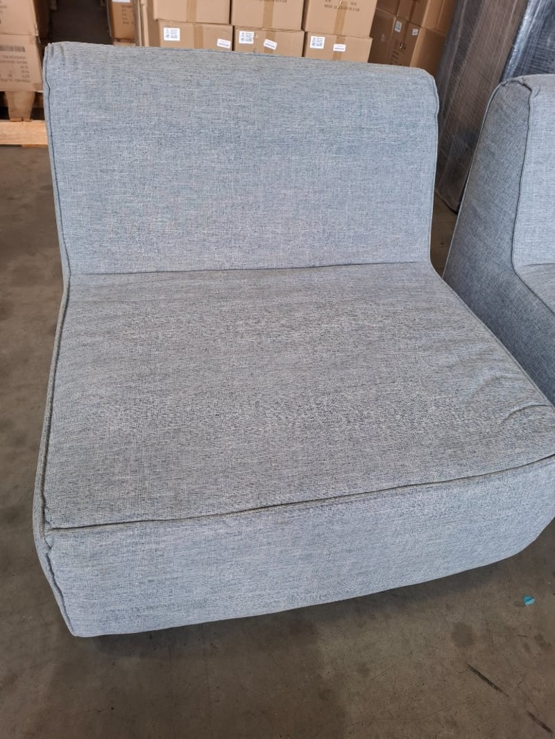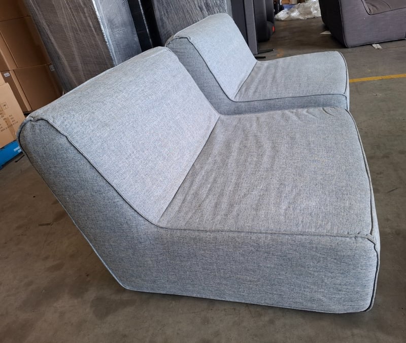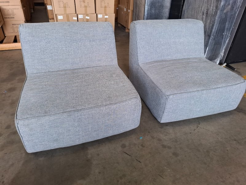 2 x pale navy blue fabric couches 90cm x 102cm x 70cm Note: sold as pair, minor cleaning required