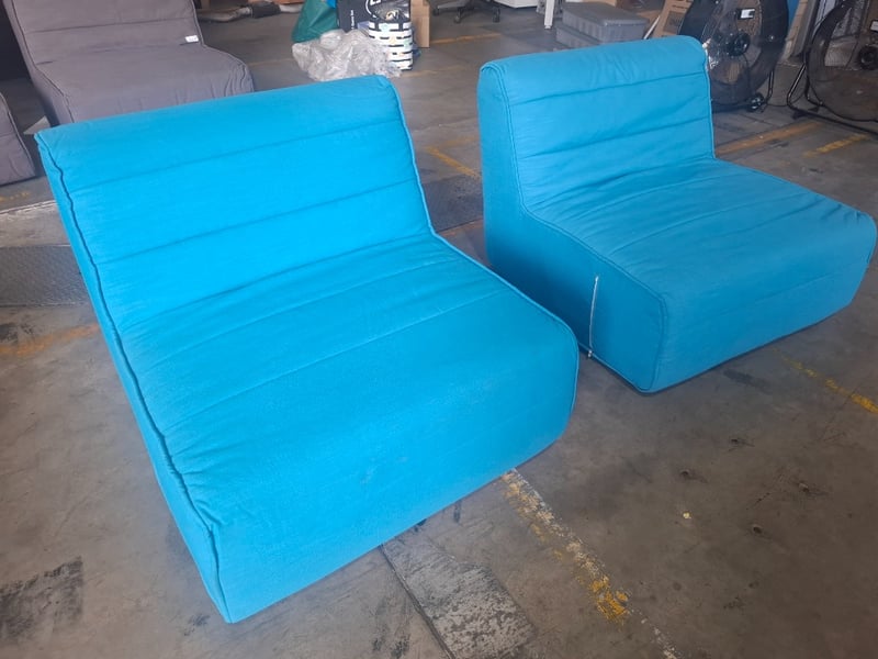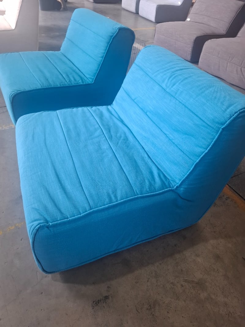 2 x bright blie fabric couches 90cm x 102cm x 70cm
