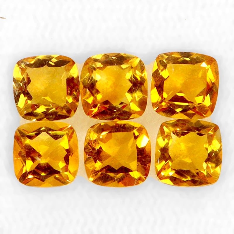 NATURAL 5.77CT CUSHION CUT ORANGE CITRINE LOT. 6 PIECES Natural 5.77Ct Cushion Cut Orange Citrine Lot. 6 PiecesSize: 6.0 X 6.0 X 4.2 Mm.Note: Image Forms Part Of Description Condition: Good - Refer Images 0488483+30