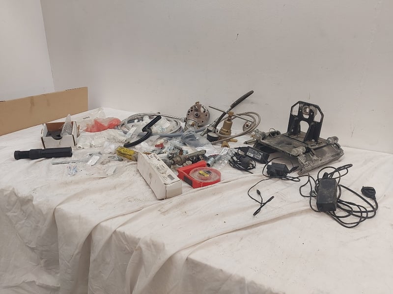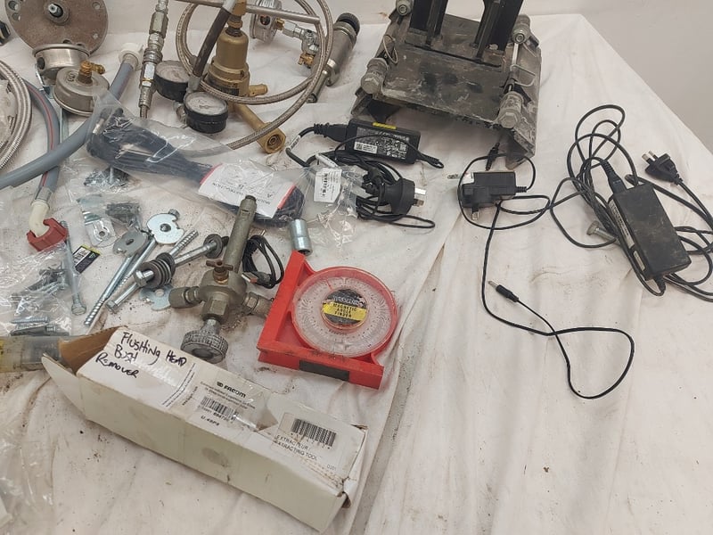 Assorted Lot Includes, Extracting Tool 38mm-50mm, Inside Expanson Puller Famcom, Portable Torque Texter Bracket, Gages, Charging Cords, And More, Quantity As Lot Sold As Lot