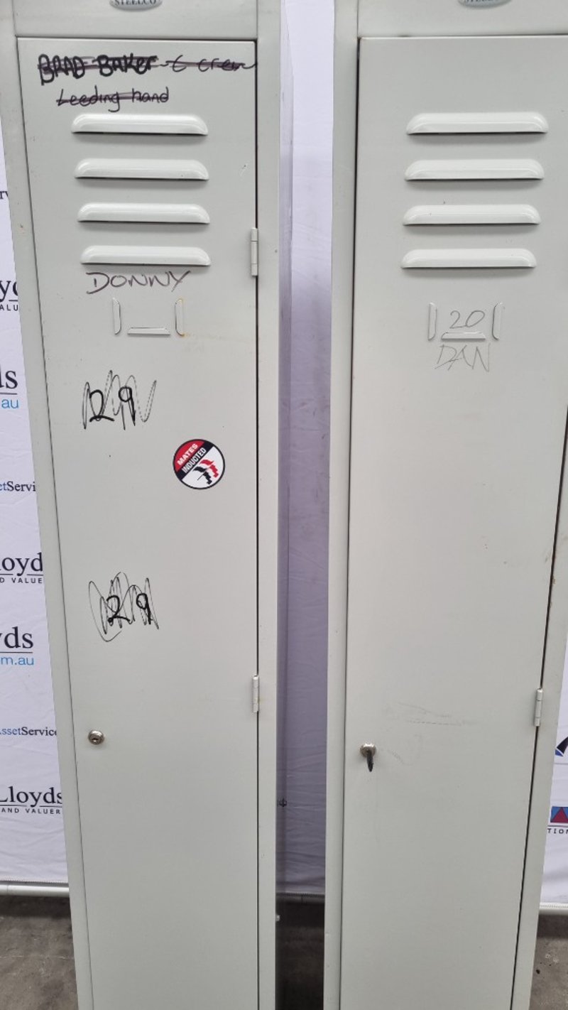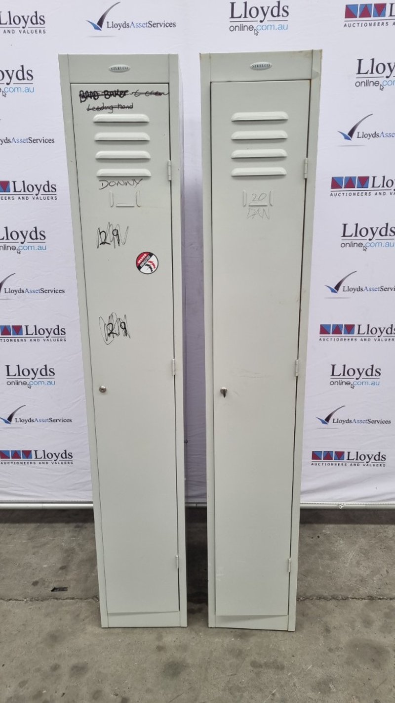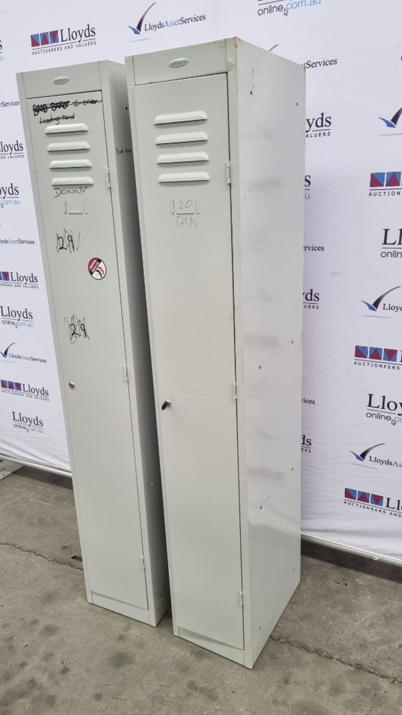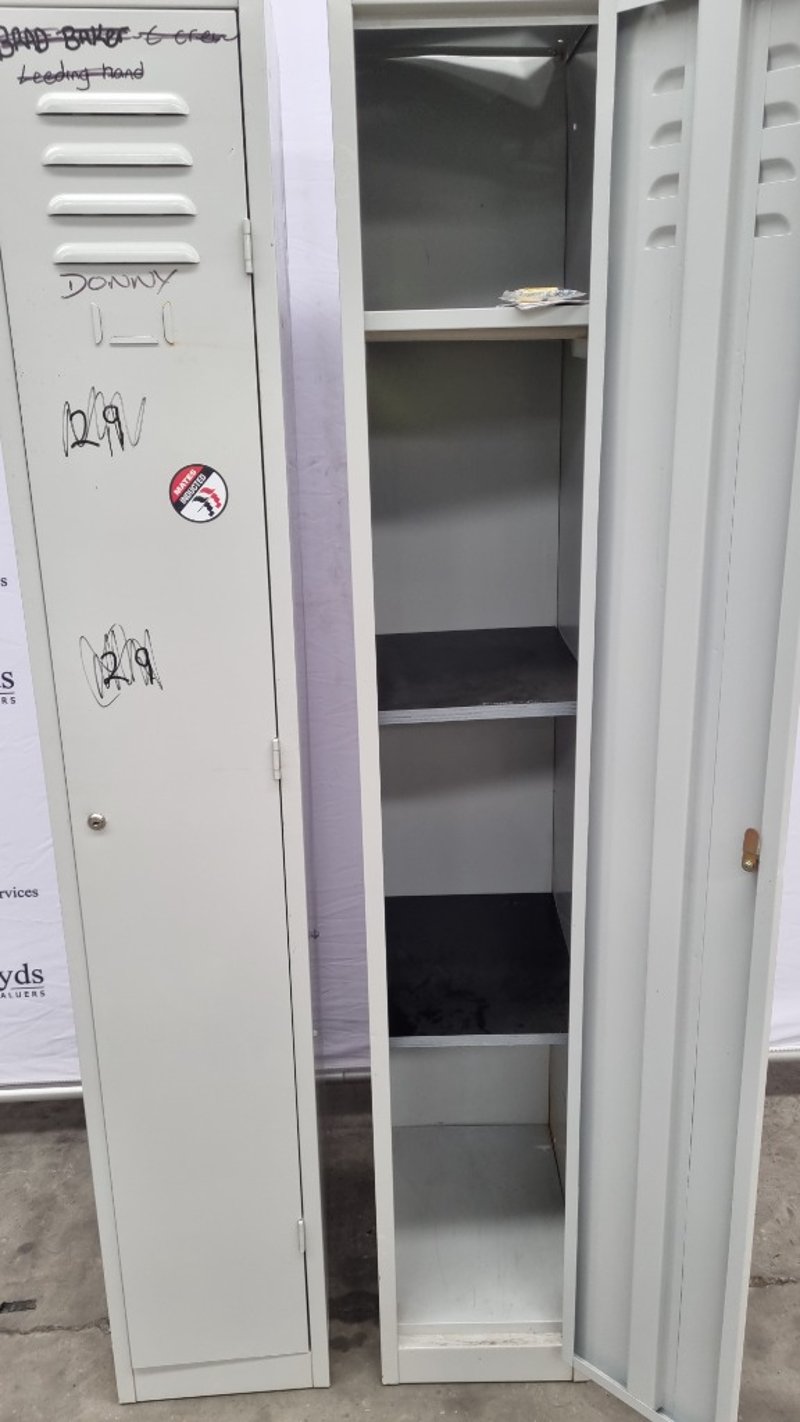 Single Door Steel lockers, SteelCo, Powder Coated Grey, Dimensions, 183cmH x 30cmW x 46cmD Missing Keys, Marks and Scratches