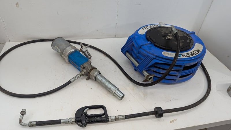 Oil Transfer Equipment, Including Macnaught R500 Air Operated Oil Pump, Retracta Hose Reel, Oil Control Gum, Quality Per Lot Sold As lot