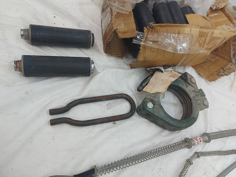 Assorted Lot Includes, Whip Ceck Hose To Hose, Plasson Hook, Rubber Rollers, Heavy Duty Concrete Pump Pipe Clamp, Quantity As Lot Sold As Lot