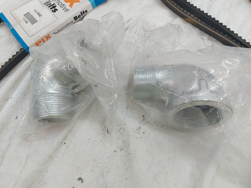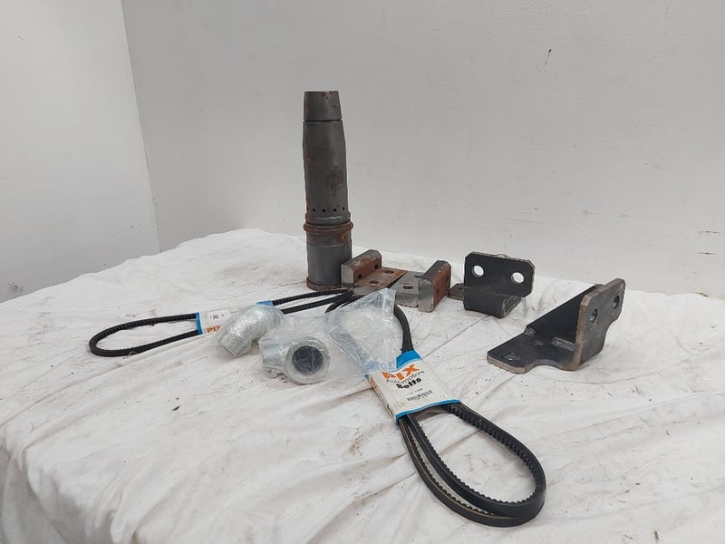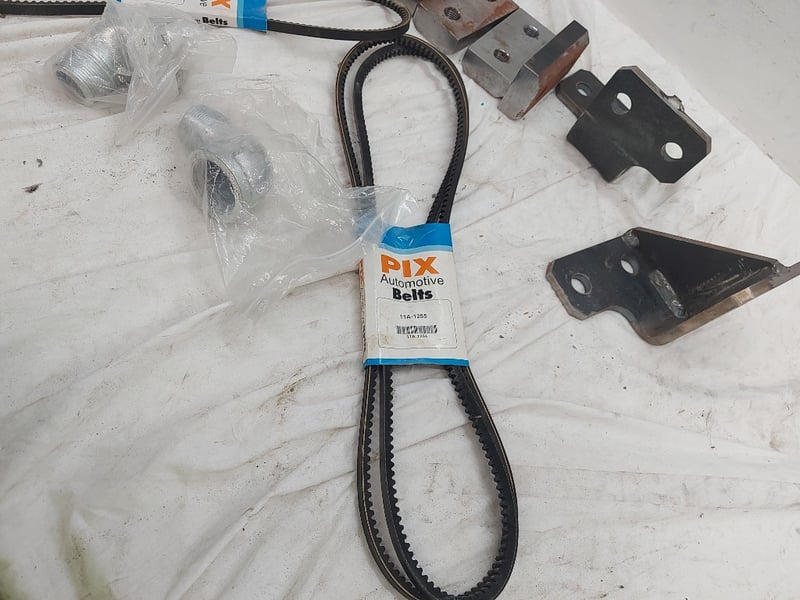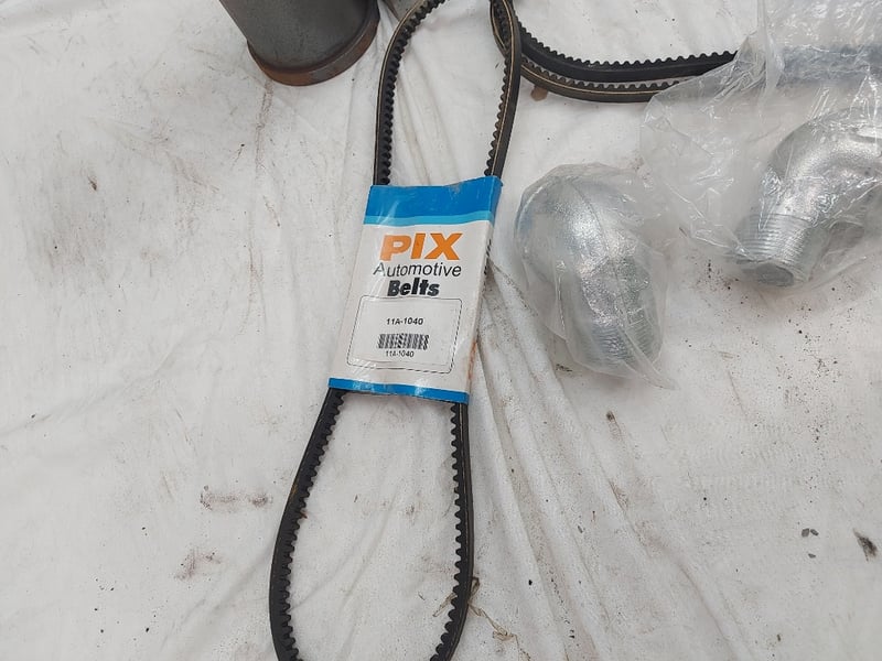 Assorted Lot Includes, Automotive Belts 11A-1255, 11A-1040, Steal Mounting Brackets, Male And Female Elbow, And More Quantity 11 Sold As Lot