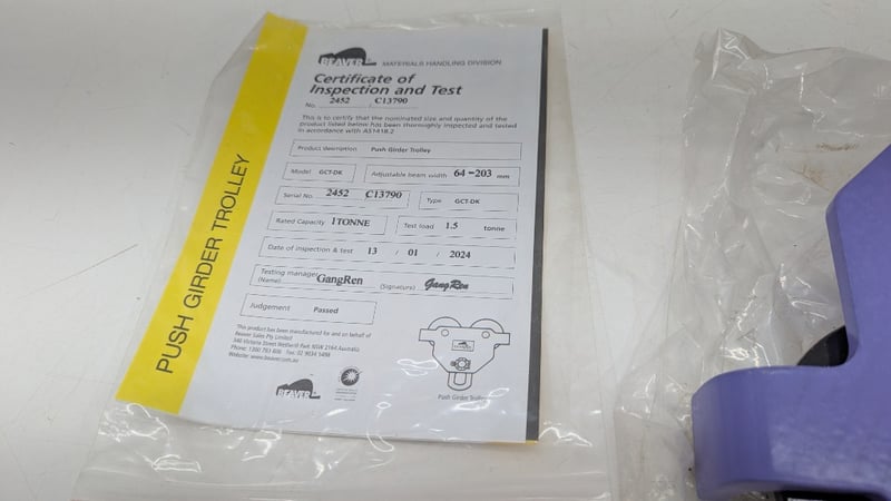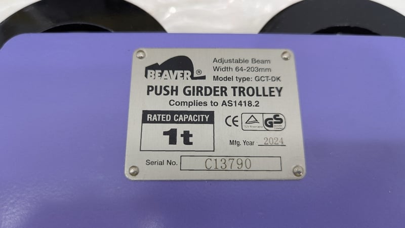 Push Girder Trolley, Beaver, Model: GCT-DK, Rated Capacity 1 Tonne, Adjustable Beam Width,