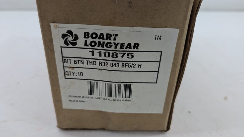 R32 43mm Hemi Button Bit, Boart Longyear, Part No: R32 043 BF5/2 H, Dimensions 11.5cm(H)×4.5cm(W), Quantity 10Sold As Lot