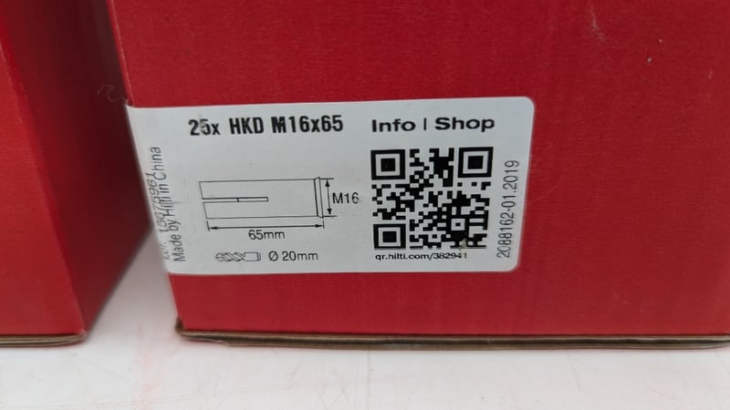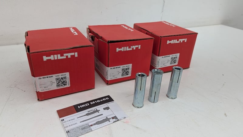 High Performance Carbon Steel Tool Set Drop In Anchor with Metric Thread, Hilti, Model: HKD M 16×65, 25 PC's Per Box, Quantity 3Sold As Lot