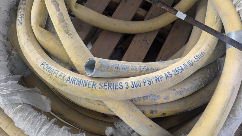 Air/Water Delivery Heavy Duty, EF630 - AS2554 - 20 Bar (300PSI) - DN 51 - 2", Powaflex Airminer Series 3 300 PSI WP AS 2554-B ID - 51mm, Unknown Lengths, Most With Connections, Quantity Per LotSold As Lot